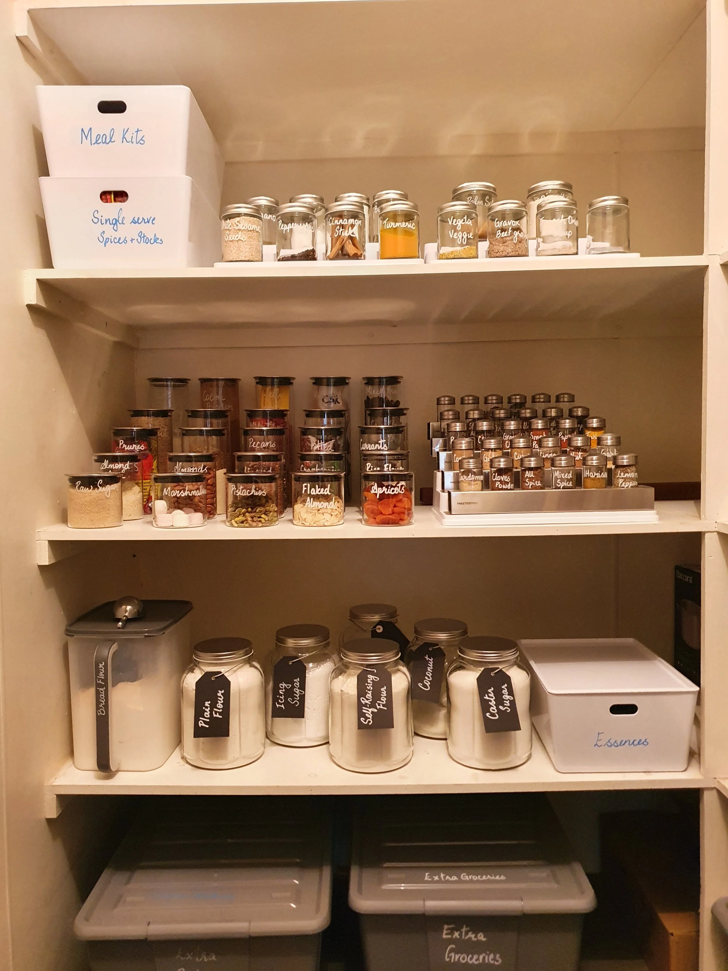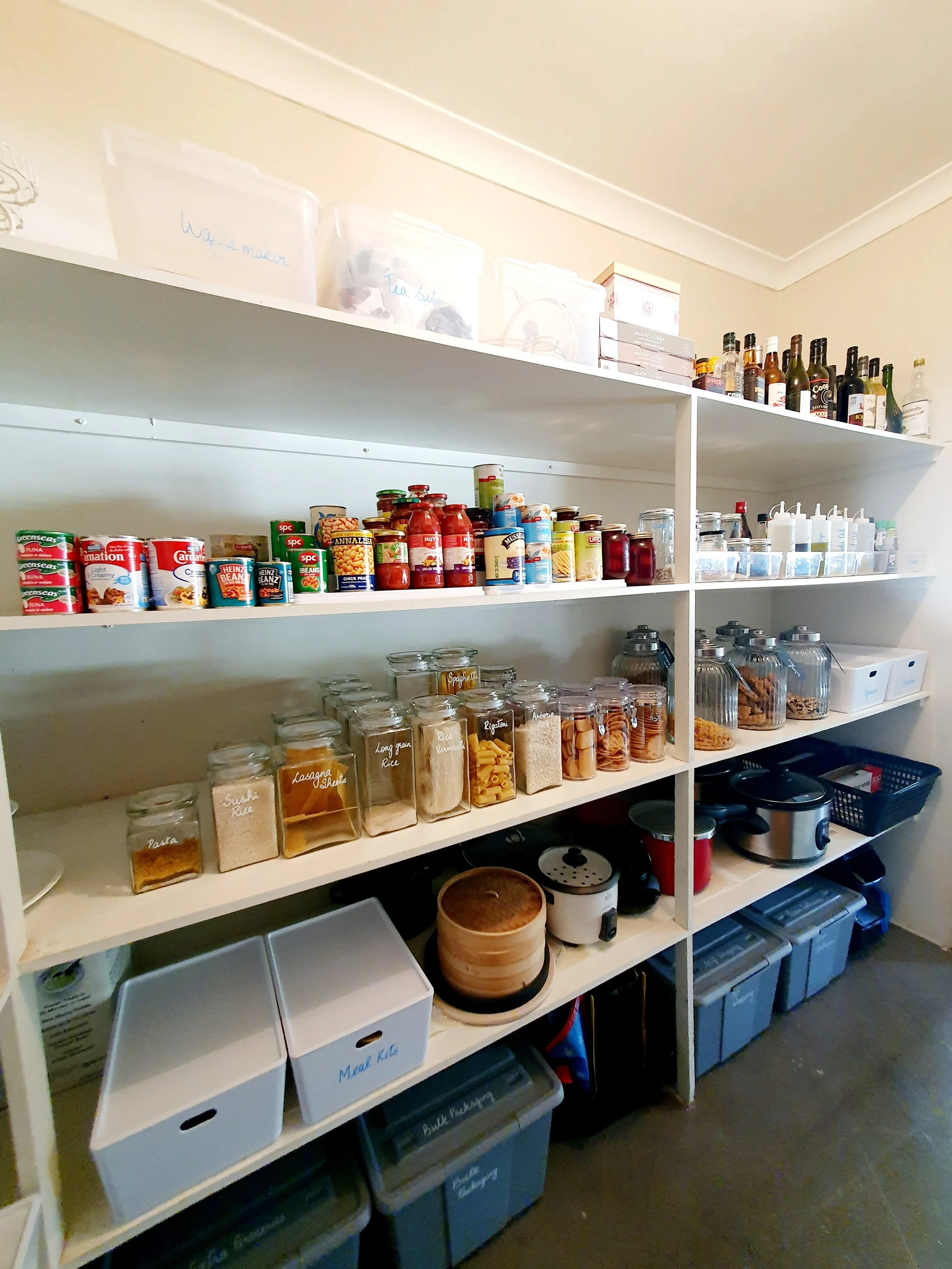 After a deep clean and de-clutter, the pantry now houses only the regularly used items.