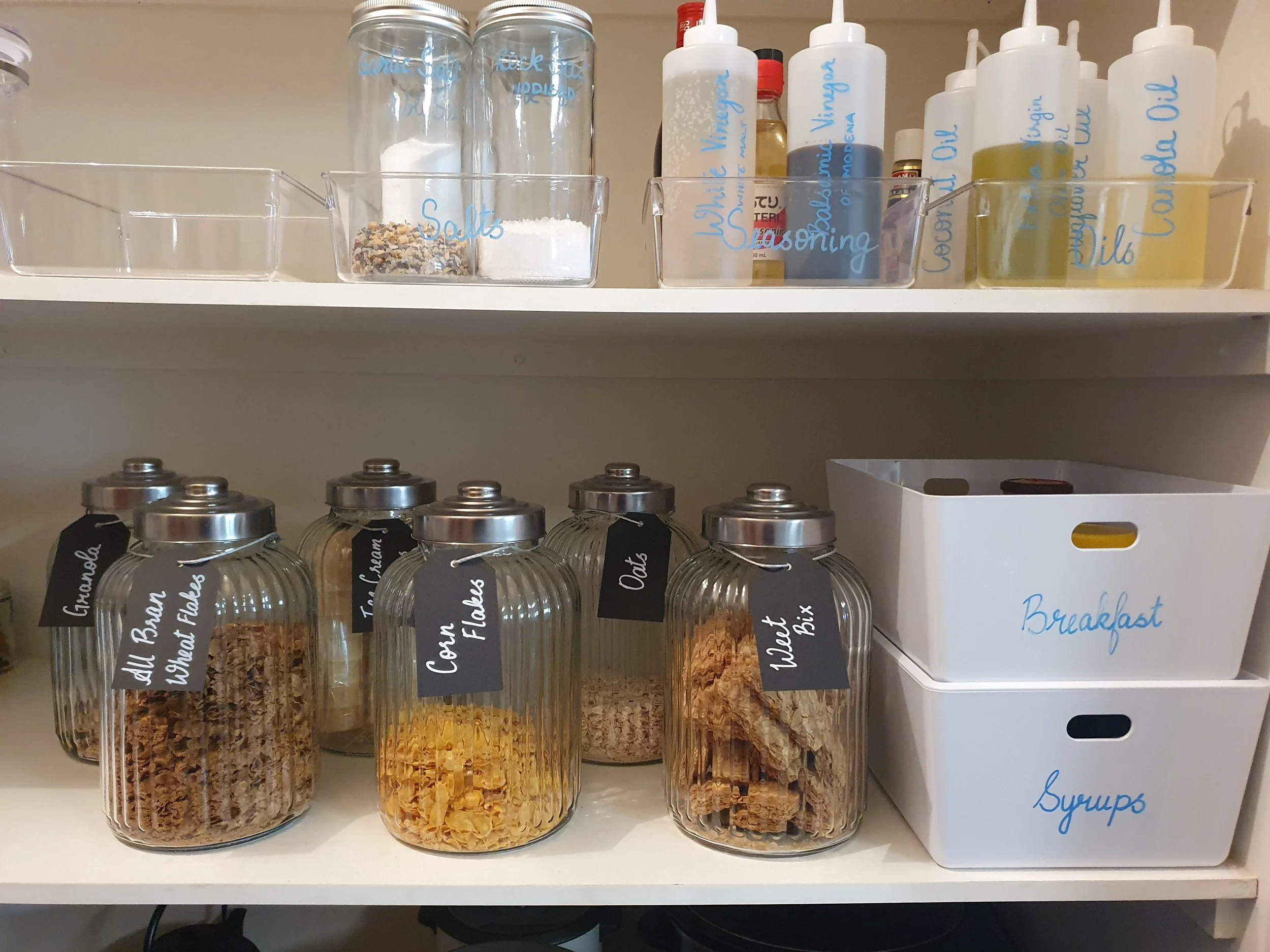 The pantry now looks bright and colourful, everything within easy reach.