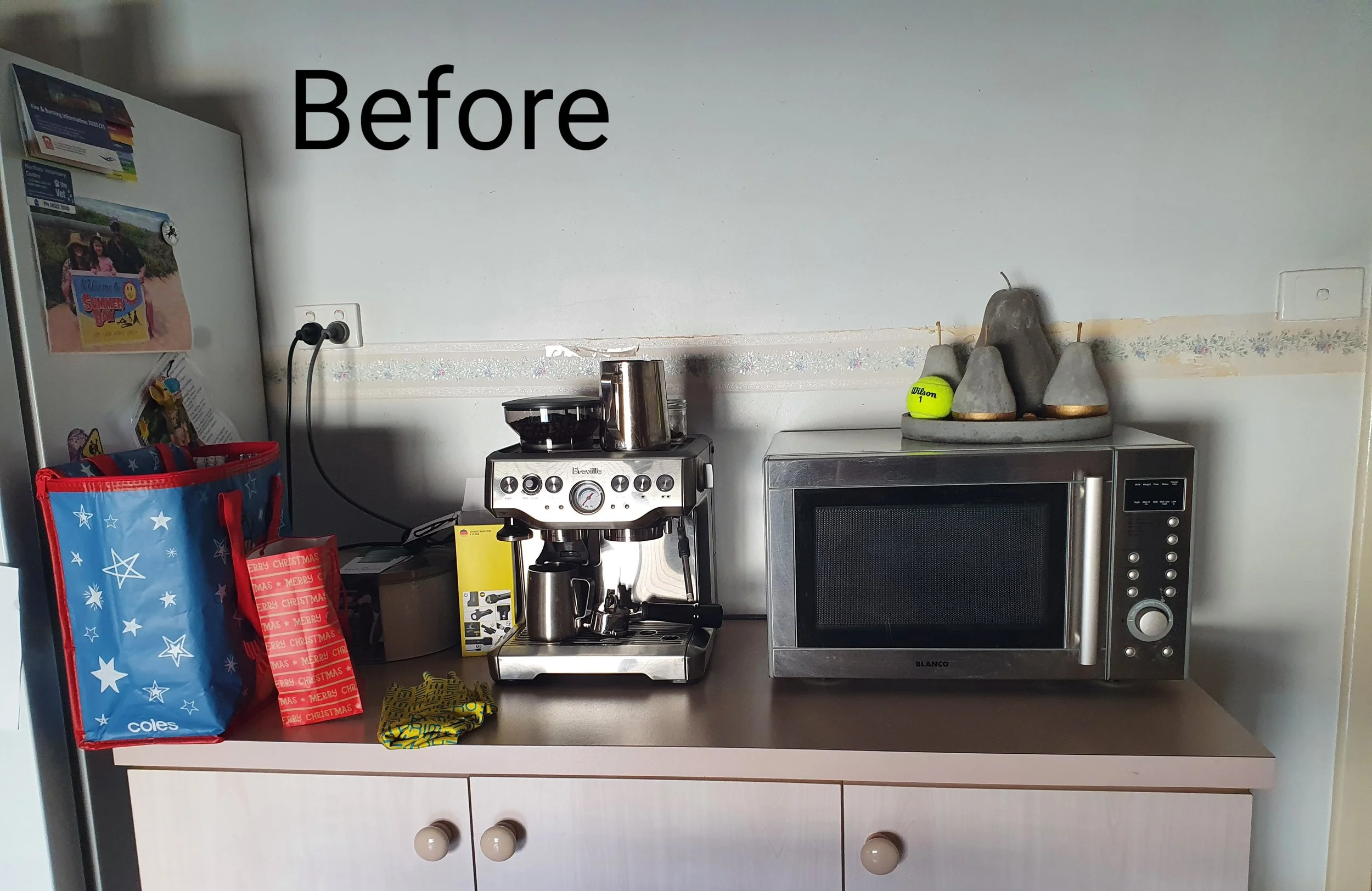Before - cluttered benchtop